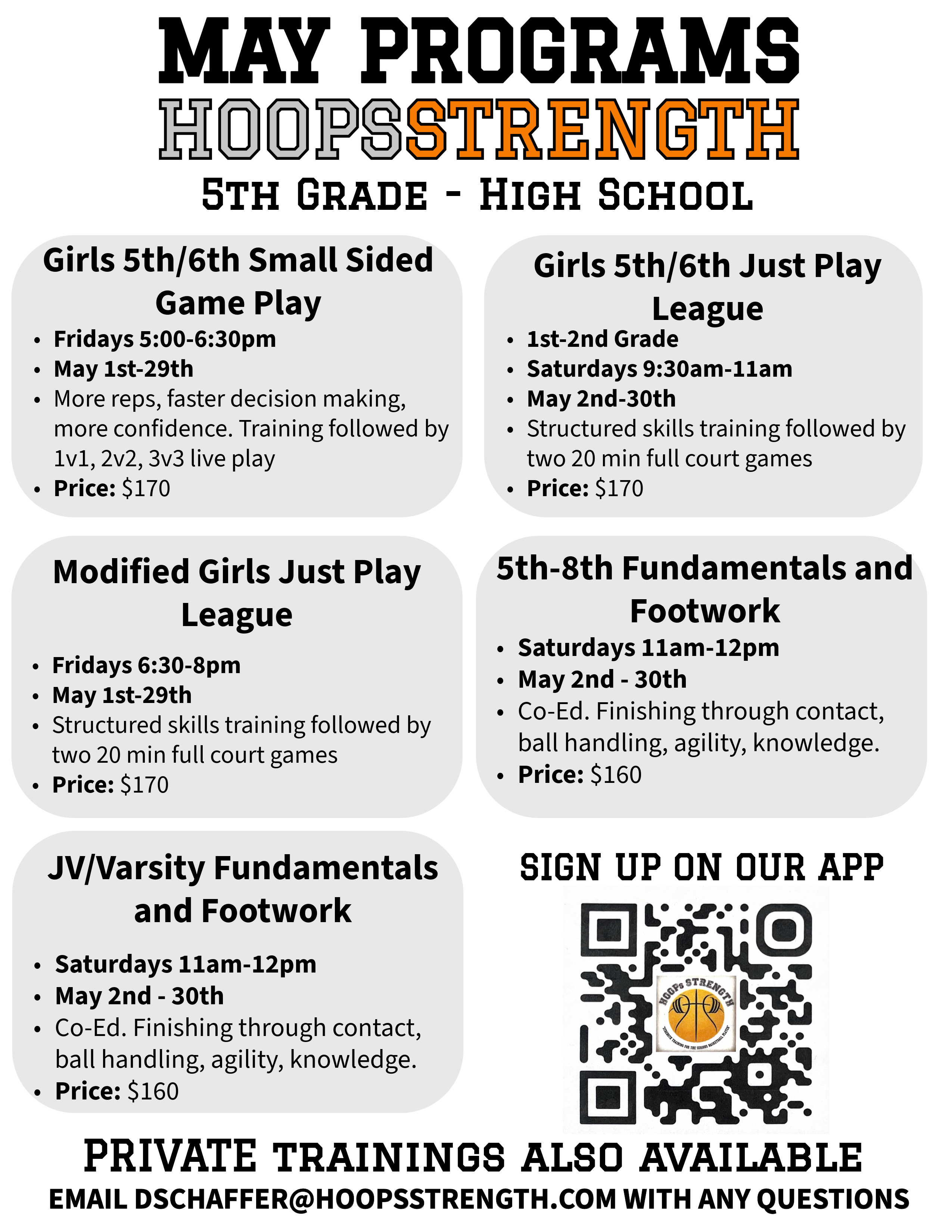 HoopsStrength Inc. specializes in basketball specific strenth, fitness and skills training accross Rochester, New York. Download our app to book now!
